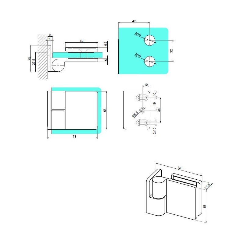 This hinge allows you to open or install the panel at a 90-degree angle. It is ideal for shower enclosures and other glass structures. You can install it on the left side. Remember that chrome-plated brass is a finish that adds elegance and durability.