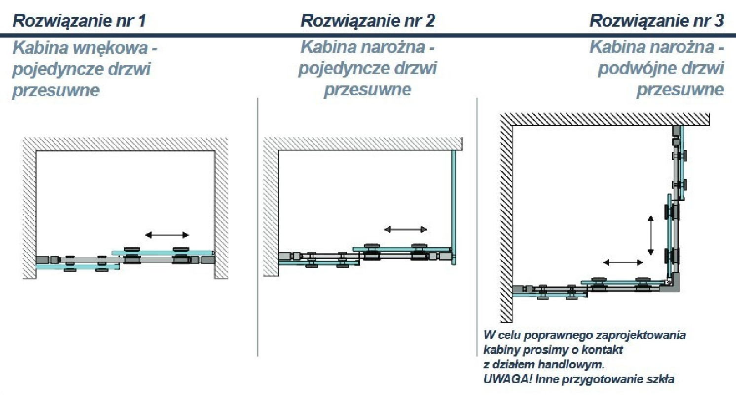 Sliding door systems in shower enclosures.