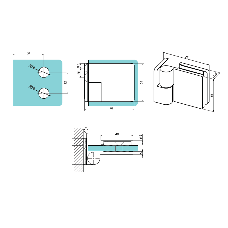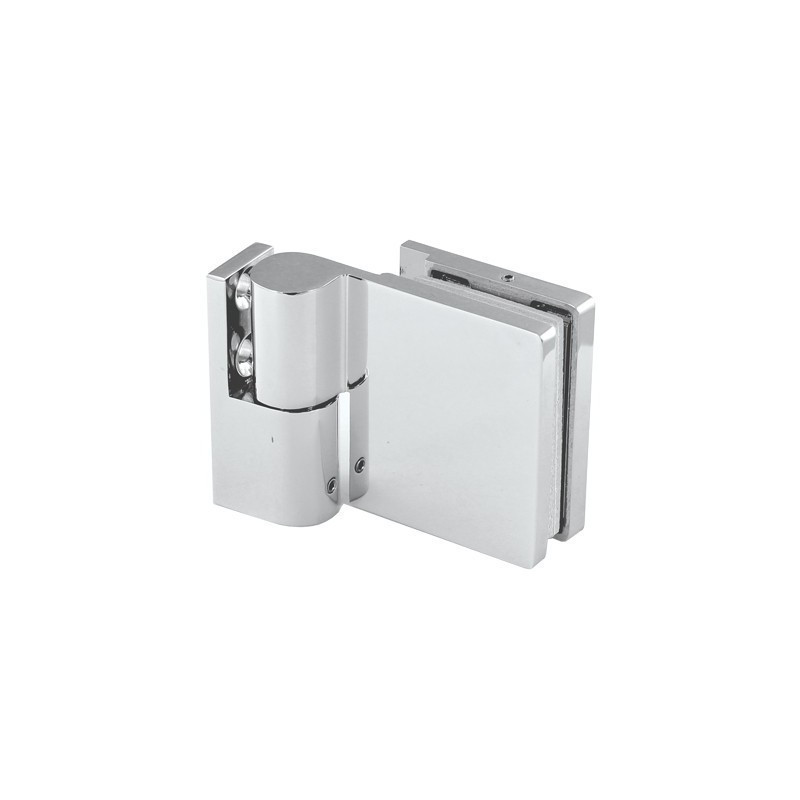 A sturdy, precisely manufactured hinge designed for installing glass doors in shower enclosure structures, connecting the glass to the wall element at a 90° angle. Equipped with a door lifting mechanism when opening, which ensures smooth movement, minimises seal wear and facilitates closing.