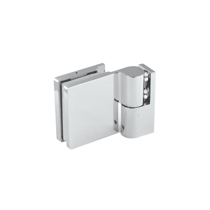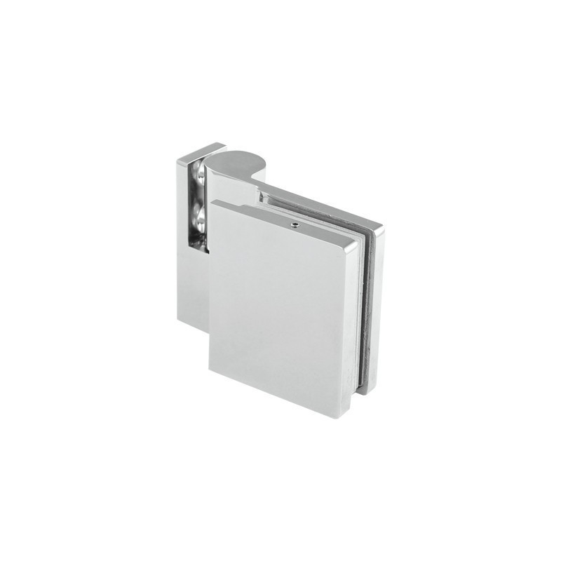 A sturdy, precisely manufactured hinge designed for installing glass doors in shower enclosure structures, connecting the glass to the wall element at a 90° angle. Equipped with a door lifting mechanism when opening, which ensures smooth movement, minimises seal wear and facilitates closing.
