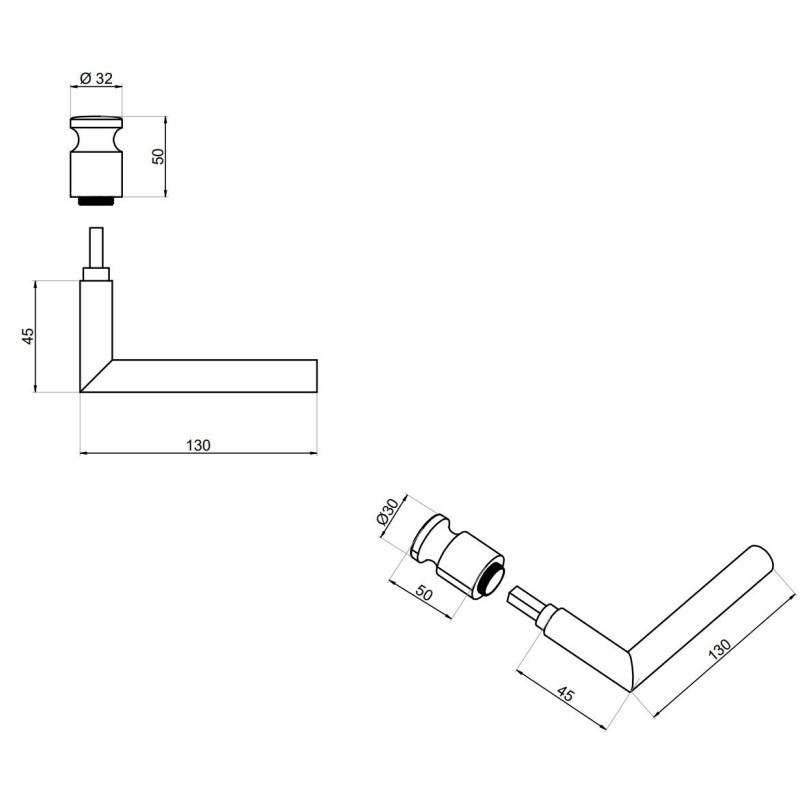 The combination of a handle on one side and a fixed knob on the other makes the NTH07 model ideal for doors where controlled access is required on one side and free opening on the other.