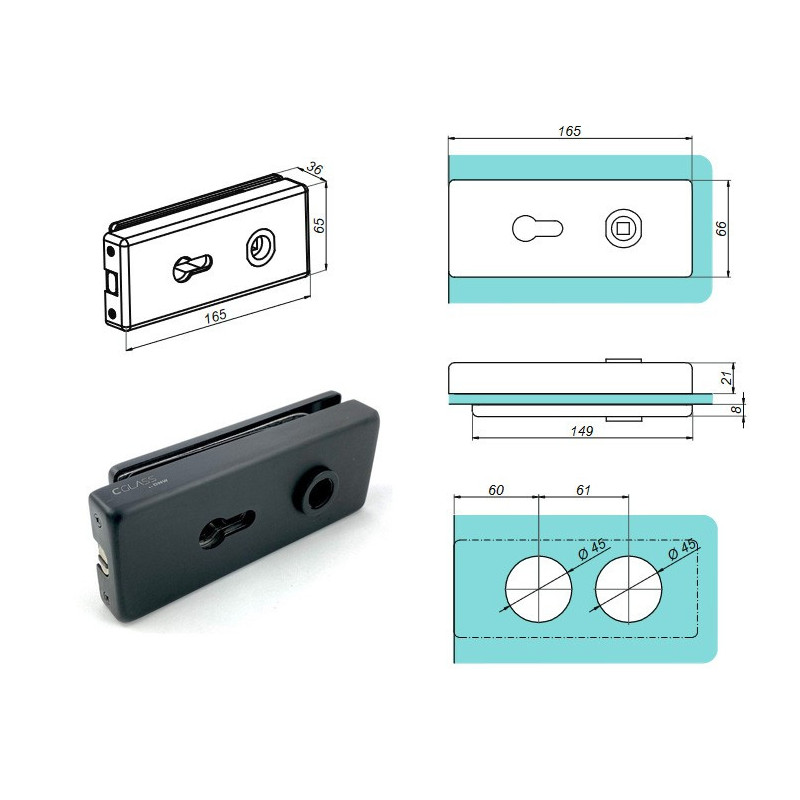 This compact lock is a practical and economical solution for glass doors. Thanks to its magnetic locking mechanism, it ensures quiet and smooth operation of the door leaf without the need for a classic latch bolt.