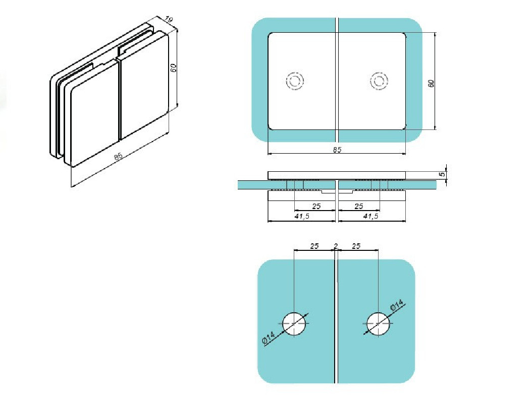 The VER-SLIM-903 connector is a high-quality fitting designed to join two panes of glass at 135°, particularly in shower enclosure constructions.