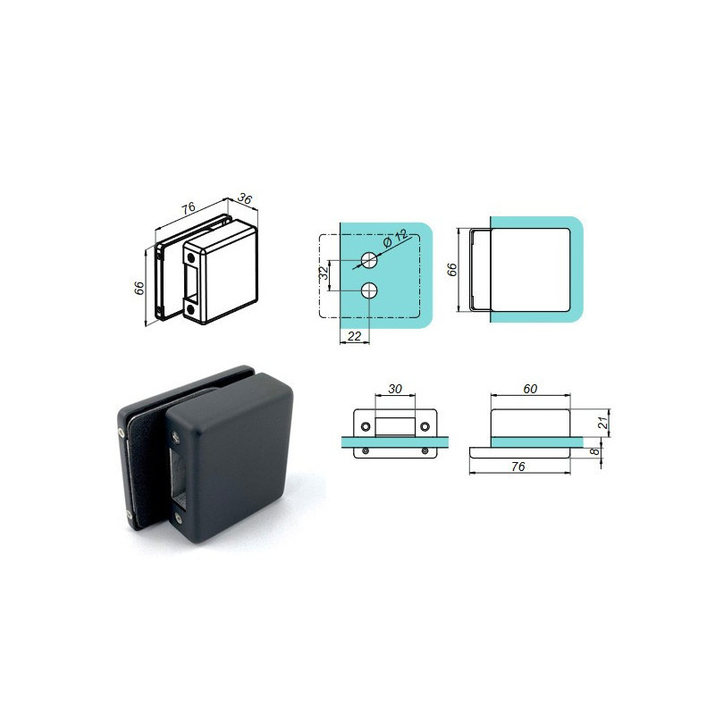 • Glass thickness: Compatible with 8 mm, 10 mm and 12 mm thick glass.