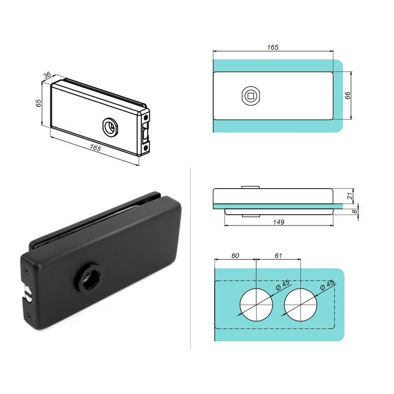 • Glass thickness: Compatible with 8, 10 or 12 mm thick glass.
