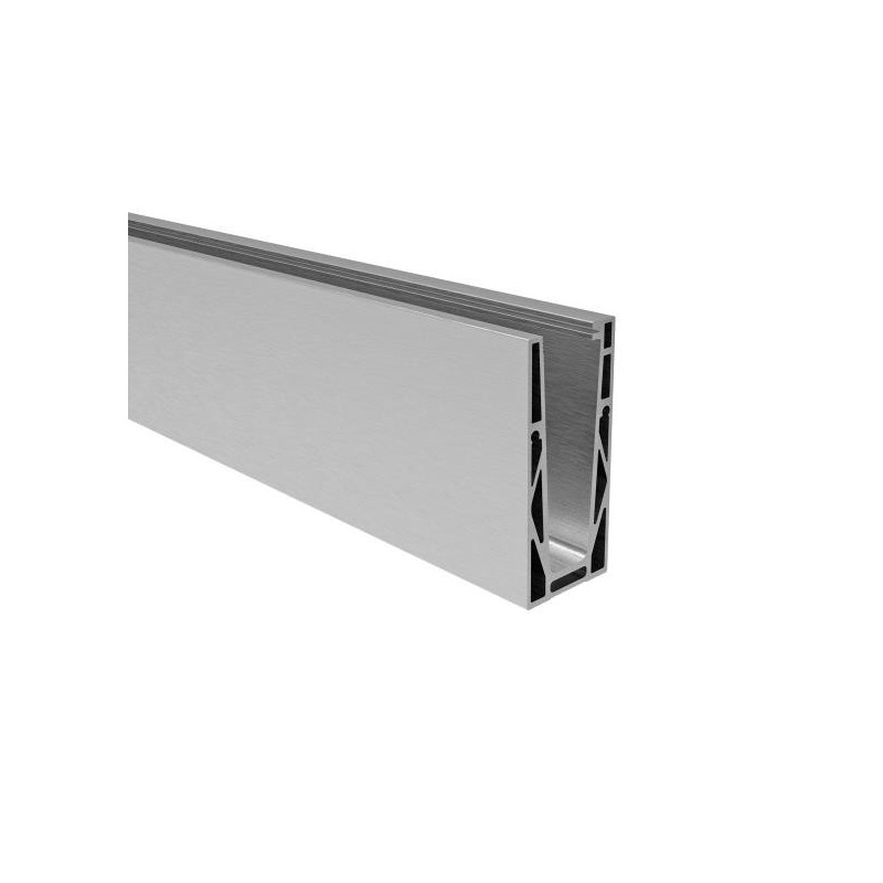 This is a high-quality aluminium balustrade profile designed for U-shaped floor mounting, fixed from above. Thanks to its solid construction, it ensures durability and safety while maintaining a modern and elegant appearance.