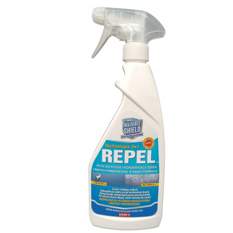Repel (liquid), is a patented liquid for cleaning and maintaining glass and other surfaces, giving them a streak-free shine while protecting the nanotechnology coating from the ingress of dirt, scale and stains. It facilitates repeated cleaning, creating a protective barrier. REPEL® reduces the adhesion and accumulation of hard water stains, dirt, grease spots, streaks, fingerprints, soap deposits and other minerals (3)