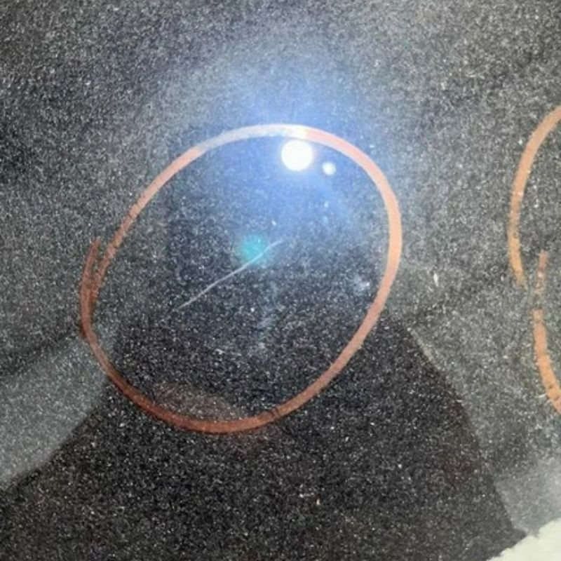 Sklo má škrabance viditeľné na fotografiách, ktoré treba zohľadniť pri plánovaní jeho použitia.
