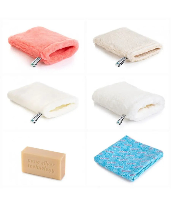 Prać ręcznie mydłem Nanosilver Soap lub w pralce, w temperaturze do 60 stopni C, bez stosowania środków zmiękczających.