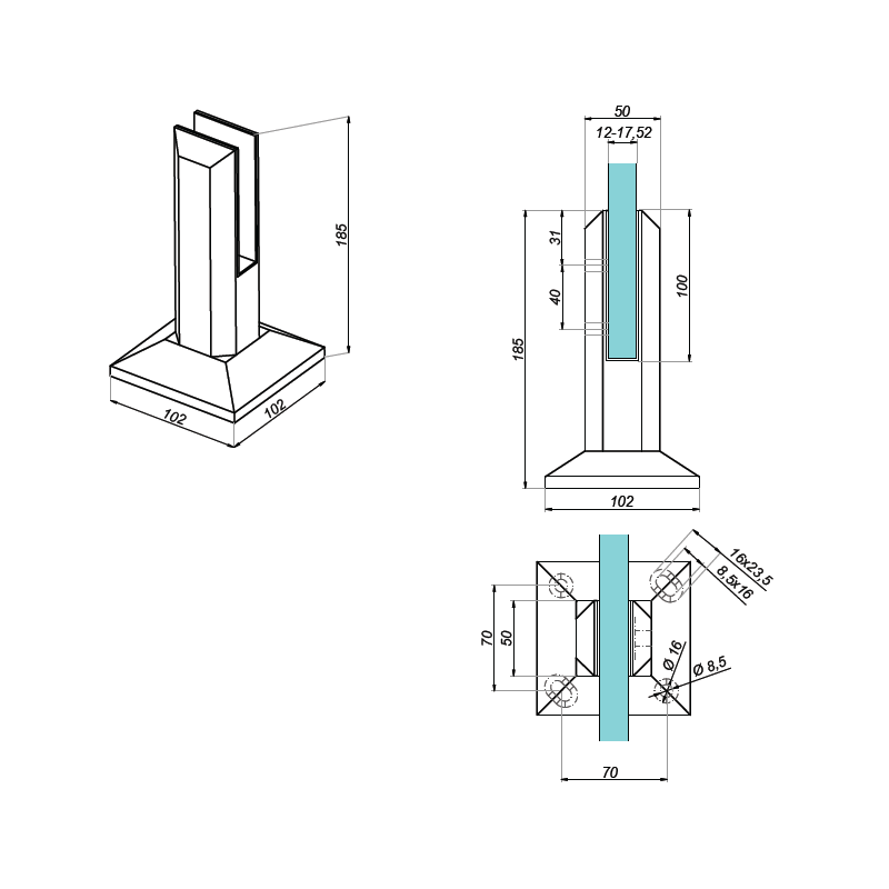 Spigot przeznaczony jest do nowoczesnych balustrad szklanych, montowanych na: