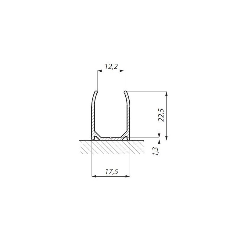 Profil montażowy „U” do paneli stałych, rekomendowany do użycia w kabinach prysznicowych.