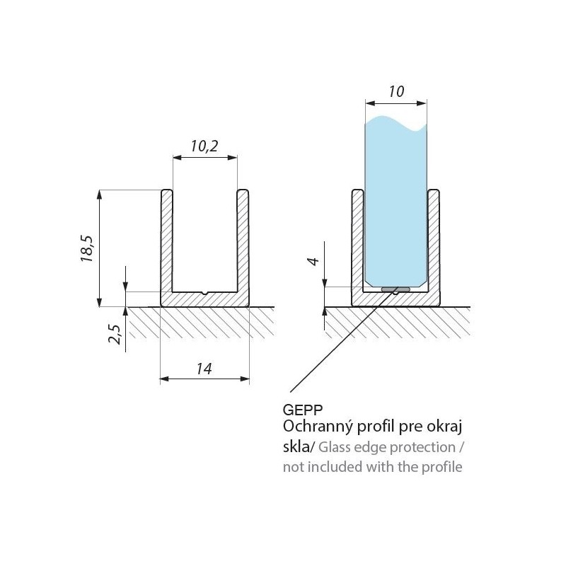 Profil montażowy „U” do paneli stałych, rekomendowany do użycia w kabinach prysznicowych.