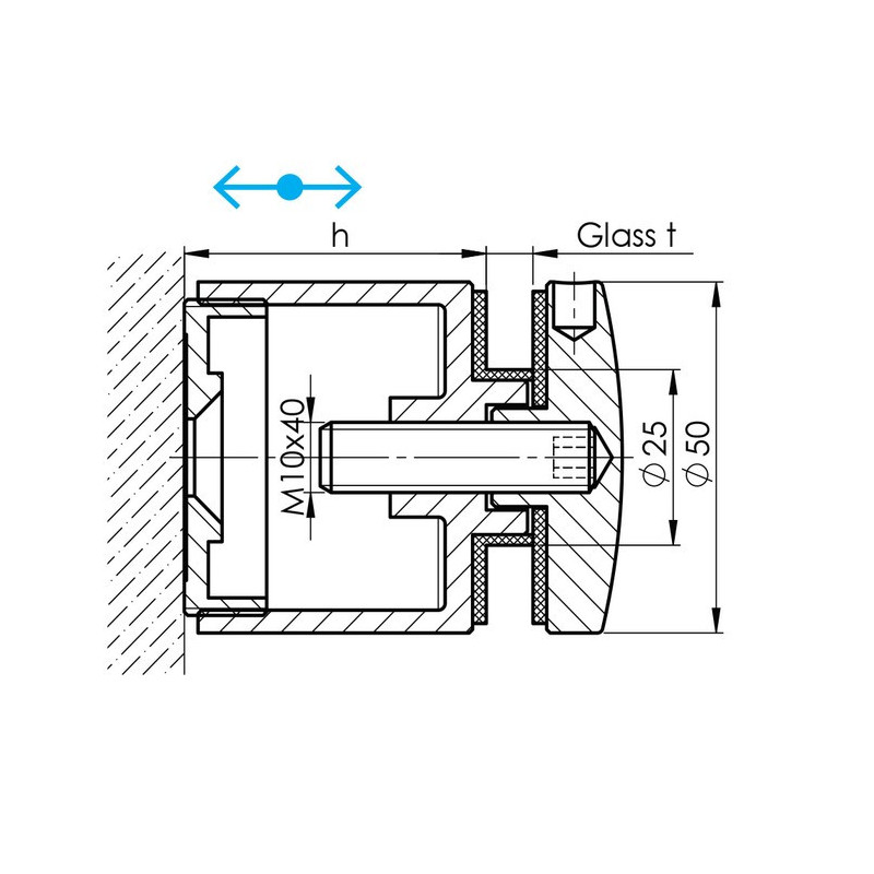 Regulowany uchwyt ze stali nierdzewnej do napełniania szkła. Uchwyt jest przeznaczony do szkła o grubości od 8 do 17,52 mm.